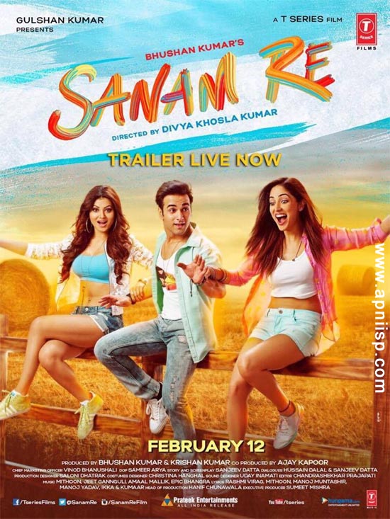 Sanam Re is an Bollywood (Hindi) 2016 movie. This is a romantic drama film, starring Pulkit Samrat, Yami Gautam , Rishi Kapoor lead roles in the film. The film is directed by Divya Khosla Kumar and Produced by Bhushan Kumar, Krishan Kumar, Ajay Kapoor. it release on 12 February 2016.